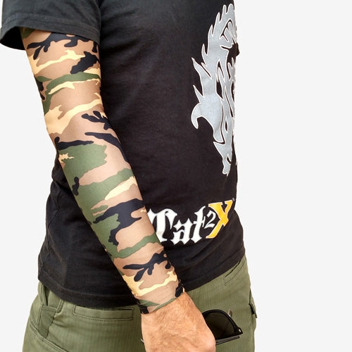 Green Camouflage Arm Sleeves For Covering Up Tattoos Ink Armor Tat2x